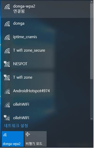 4. <그림4>무선네트워크 목록 중 ‘donga-wpa2’를 선택하여 [연결]을 클릭합니다.